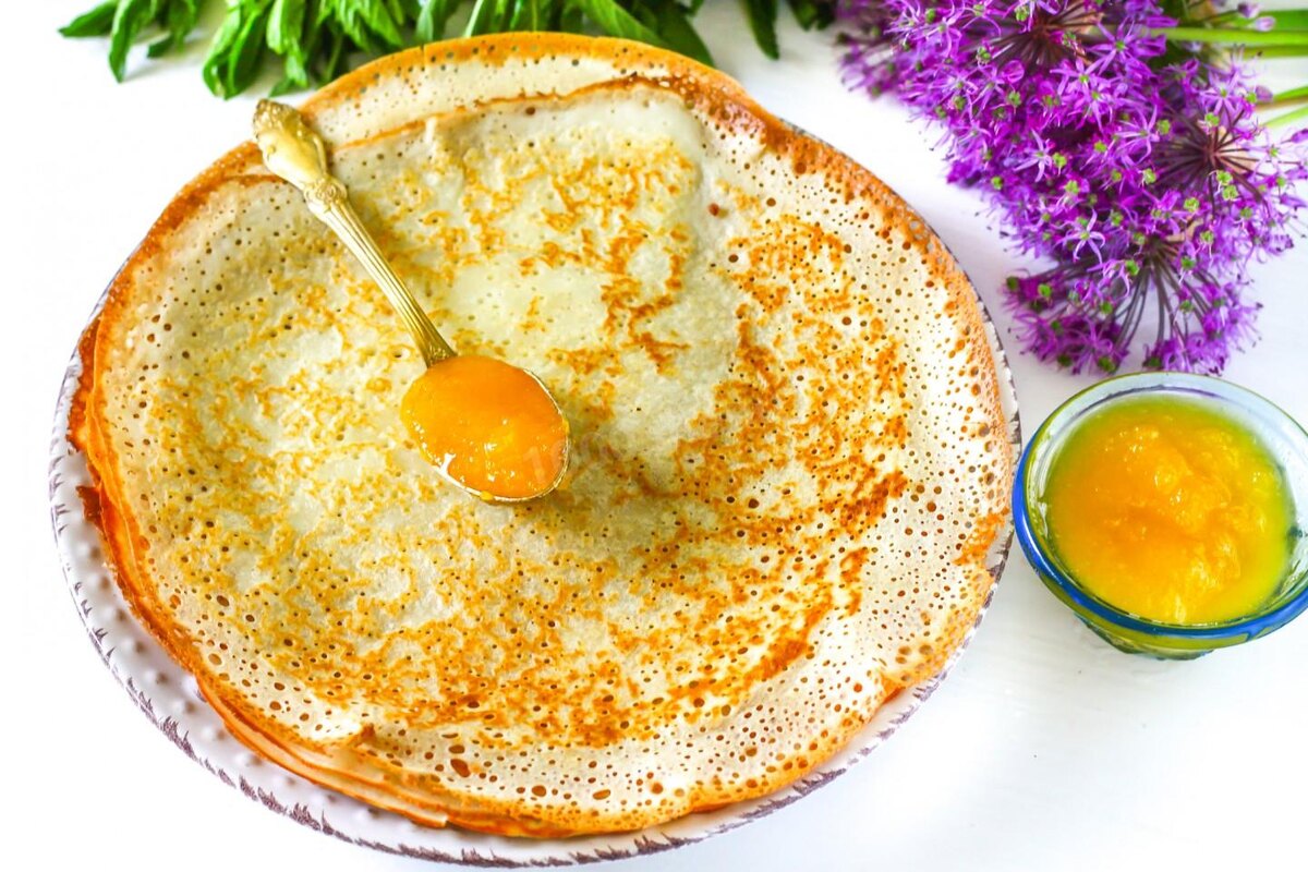 Блины на дрожжах будут толще обычных. Многим нравится их пышность и вкус. ---Продукты для приготовления--- 1. Дрожжи - 30гр. 2. Сахар - 3 ложки. 3. Молоко - 1литр 4. Яйца - 3шт. 5. Соль - 1 чай.ложка 6. Мука - 550гр. 7. Сливочное масло 210гр. ---Приготовление--- 1. Раскрошить дрожжи, добавить ложку сахара и залить тёплым молоком. Перемешать и оставить настаиваться. 2. В ёмкости взбейте яйца, добавьте соль и оставшийся сахар. По желанию, сахара можно взять немного больше. Вылить всё тёплое молоко и тщательно взбить. Добавьте дрожжевую смесь и снова перемешайте. 3. Медленно высыпайте муку, перемешивая тесто до однородного состояния. Вылейте половину растопленного масла. Прикройте ёмкость полотенцем и уберите в тёплое место на 50 минут. За это время тесто нужно перемешать пару раз. 4. Разогрейте часть оставшегося масла на сковороде. Налейте на неё тесто и обжаривайте на среднем огне до румяного цвета. Тесто берите немного больше, чем на остальные блины. 5. Сковороду нужно смазыв