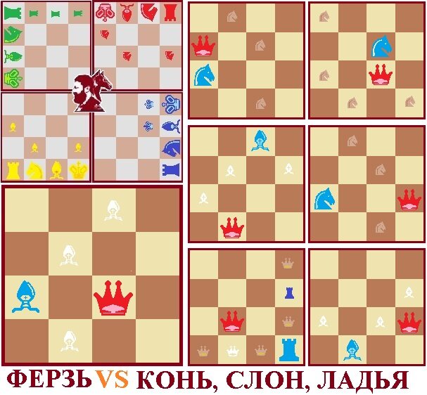 Ферзь vs Конь, Слон, Ладья