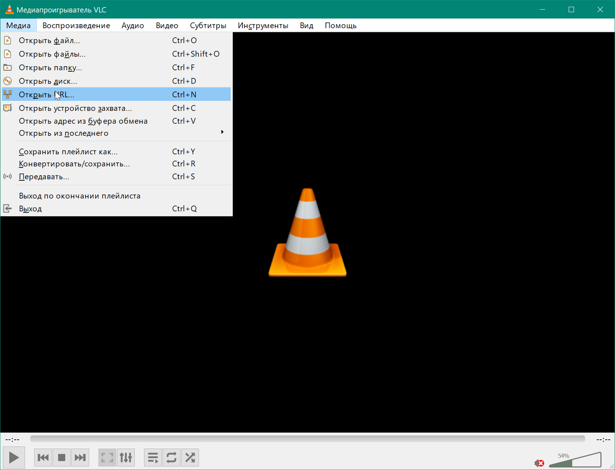 Копируем ссылку на видео и открываем в плеере VLC