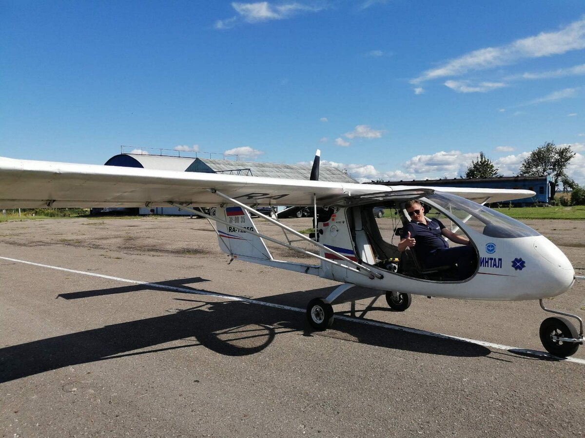 Второй момент, когда я смутился, произошёл уже при посадке в самолёт. Владимир сказал: "Так, теперь левую ногу сразу перекидывай через сиденье и садись. На тросы (тяги управления - прим. автора) не наступай, на корпус тоже не наступай, а то проломишь!" Вот, думаю, здорово! И вот на этой фигне стеклопластиковой мы сейчас полетим? А у меня дети дома, да и вообще пожить ещё хочется - я ведь не такой уж и старый...