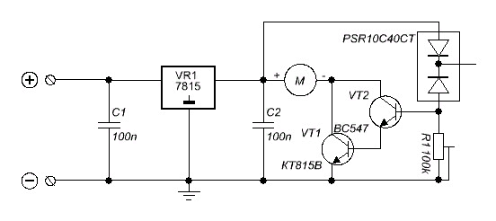 Простому блоку питания нужен “умный вентилятор”, который охлаждает радиатор 317-й микросхемы. Причем не «тупой», который крутится постоянно, создавая лишний шум и пожирая лишнюю энергию, а такой, который работает ровно столько, сколько нужно, включаясь тогда, когда нужно. Вентилятор позволяет сэкономить на радиаторе – а стало быть, на размерах корпуса блока питания. В наш век компьютеров, вентилятор подходящих размеров добыть не проблема