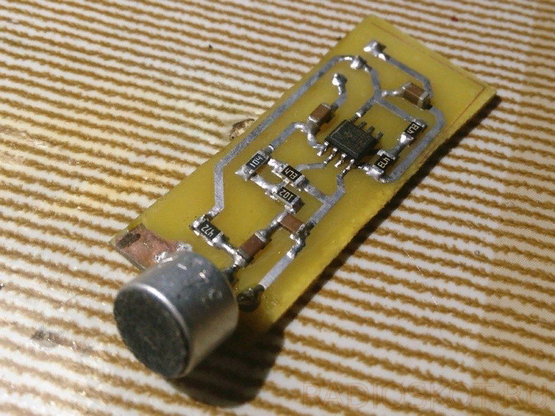 Внешний вид готовой платы усилителя - в данном случае моно-вариант. Таким образом, получился небольшой самодельный микрофон для компьютера, который не уступает по параметрам заводским, но зато имеет совершенно небольшую себестоимость, которая не превышает 50-100 рублей. Удачной сборки!