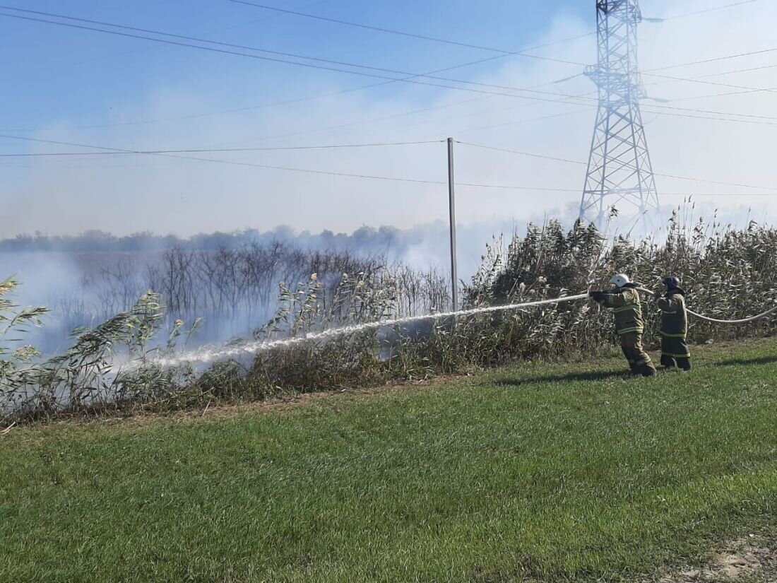 Сообщение о загорании камыша около хутора Красный поступило в 14:14. В этот момент площадь пожара уже составляла 500 квадратных метров.