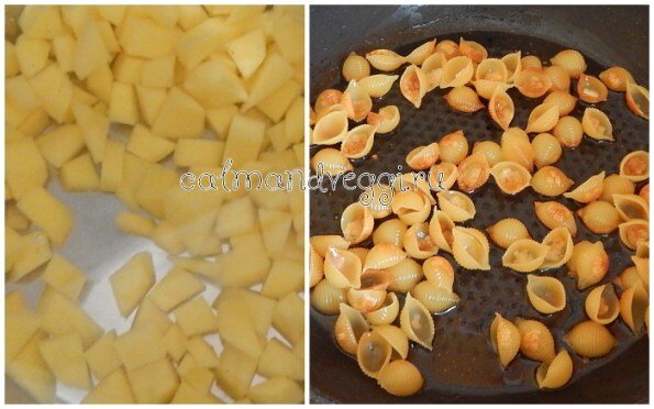 2. Сухие макароны обжарьте на растительном масле до золотистой корочки.