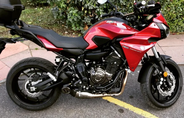 легендарный спорт-турист в суперсовременном корпусе. Главные изменения коснулись внешности, она стала авангардной с шестиугольной передней фарой и LED-поворотниками. Полностью обновлена приборная панель. Байк выдает 150 л.с. при объеме двигателя 999 куб. см., а за торможение отвечают суппорты Brembo.