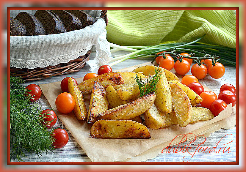 Запекать картофель ( 180 ) 30-40 минут, один раз перевернув дольки.