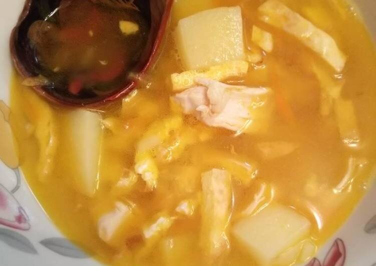 Сварить бульон на грудке, нарезать грудку на небольшие кусочки. Перекладываем обратно в бульон.