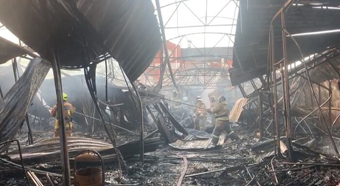 Почти три часа понадобилось пожарным, чтобы полностью справиться с огнём в торговом комплексе между центральным рынком и автостанцией. Были эвакуированы 30 человек. Пострадавших нет. Полностью сгорели больше четырёх десятков павильонов. По предварительным данным причиной пожара могло стать короткое замыкание в одной из торговых точек.