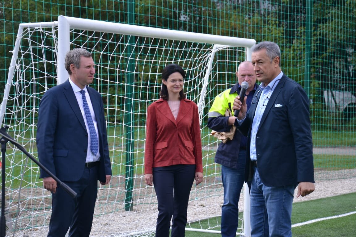 На торжественной церемонии открытия присутствовали министр природных ресурсов и экологии Калужской области Варвара Антохина, глава администрации МР "Город Людиново и Людиновский район" Даниил Аганичев, генеральный директор компании "Кроношпан" Ардашер Курбаншо и др.Открытие современного спортивного объекта завершилось товарищеским матчем школьных команд по футболу, а первые голы в ворота забили руководитель "Кроношпана" и глава администрации.Напомним, "Кроношпан" является крупнейшей в России деревоперерабатывающей компанией и имеет производственные площади на территории Особо-экономической зоны в Людиновском районе.