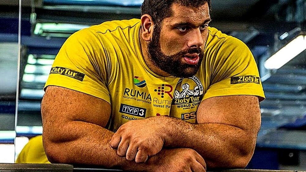 Огромный грузинский армрестлер Леван Сагинашвили, при росте 191 см, он весит около 160-165 кг, обхват его запястья составляет 27 см, а предплечье по 50 см. Это тот случай, когда попробуй еще найди кого-то у кого бицепсов в охвате как у Левана предплечья. Ну, а бицепсы у Сагинашвили, 57 на правой руке и 58 на левой.