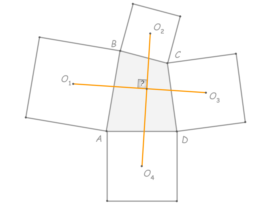 ABCD — выпуклый четырехугольник, на сторонах которого построены квадраты, см. рисунок.