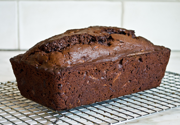 Выложите тесто в подготовленную форму для хлеба и равномерно распределите. Выпекайте в течение 60-65 минут или до тех пор, пока зубочистка, вставленная в центр, не выйдет чистой (за исключением, возможно, мазка от расплавленного шоколада). Дайте буханке остыть на решетке около 10 минут, прежде чем нарезать и снимать пробу)).