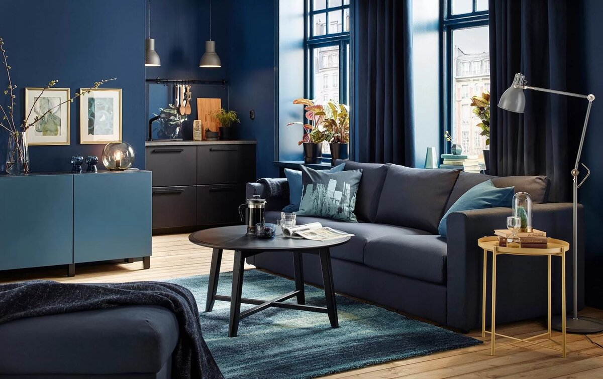 Дизайнеры советуют оставить сине-оранжевую гамму для оформления гостиной или даже ванной комнаты.