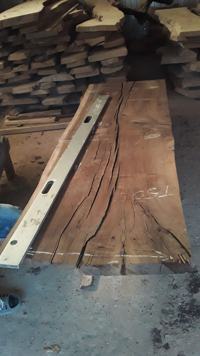 Сначала выбрал достаточно ровные и плотные слэбы карагача. Довольно сухие - не более 8% влажности. Отвёз на термирование. Термировали при температуре 80 градусов двое суток.