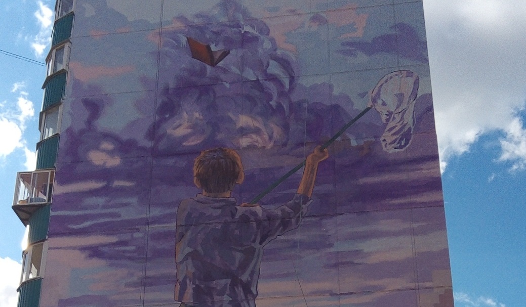 Еще один городской фасад стал произведением искусств. На картине изображен мальчик, открывший для себя целую планету знаний. Мы пообщались с создателями полотна.