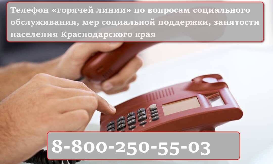 Телефон «горячей линии» по вопросам социального обслуживания, мер социальной поддержки, занятости населения Краснодарского края