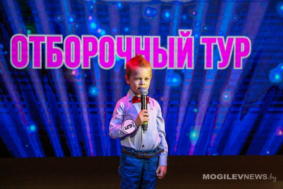Членов жюри удивляли своими голосами, красотой и хореографией семь маленьких артистов. Среди них пять девочек и два мальчика в возрасте от 5 до 6 лет. Юные могилевчане вышли на сцену, чтобы продемонстрировать свои таланты. Ребятам предстояло пройти три испытания: рассказать о себе, исполнить любую песню, а также станцевать под выбранную композицию.
