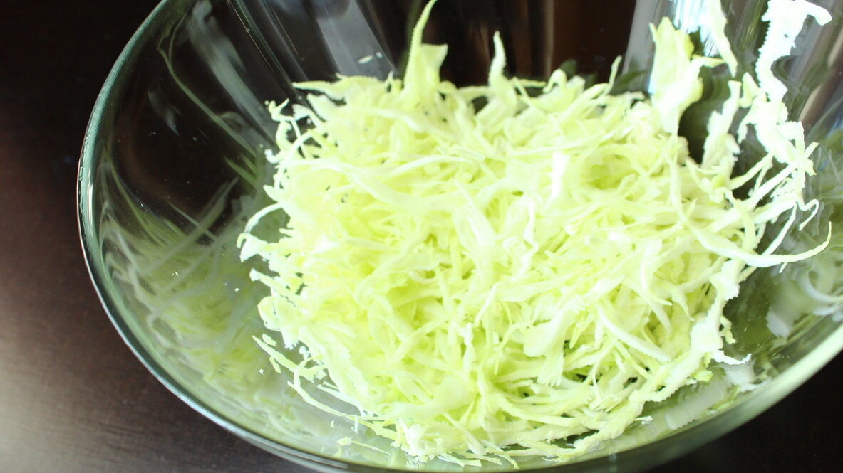 Тем временем капуста отдала свой сок, еще немного отжимаю его в руках и перекладываю на мясные шарики.