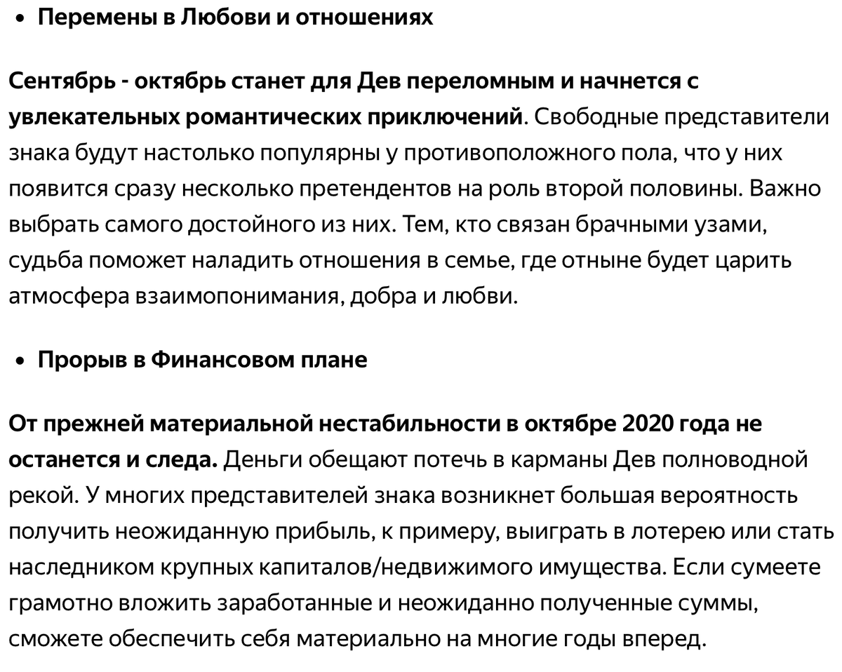Большая часть года уже позади и для Дев это время выглядит как настоящая чреда препятствий. Педантичных и чувствительных представителей этого знака жизнь старательно испытывала. Они сталкивались с самыми разными проблемами и препятствиями. Им приходилось находить выход в самых сложных ситуациях. Но период испытаний подошел к концу с наступлением осени. Этот сезон несет в себе не только перемены в
