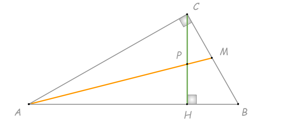В прямоугольном треугольнике △ABC (∠C — прямой) проведены медиана AM и высота CH. Точка P — пересечение AM и CH.