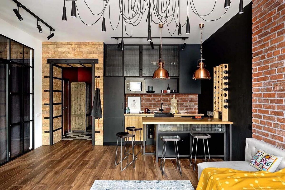 Уникальные черты лофта невозможно не узнать. Его индустриальное прошлое нашло прямое отражение в современных интерьерах: минимальное количество перегородок, обилие освещения, холодные и сдержанные тона, грубая отделка и лаконичные, но оригинальные аксессуары. Получится ли совместить все перечисленные характеристики в дизайне кухни? Давайте разбираться в нюансах. Зрительно расширяем маленькую кухню Нарочито брутальный лофт со свойственными ему темными цветами (например, коричневый, черный или терракотовый) вряд ли органично впишется в маленькое пространство. Согласитесь, что ежедневные трапезы в тесной «заводской бытовке» не вдохновят на кулинарные подвиги. Наш совет: запаситесь светлыми оттенками краски. Использование бежевого или белого цвета только сыграет вам на руку, позволив «удлинить» комнату. Выкрасите ими потолок и стены, чтобы кухня стала более «воздушной». В качестве функционального и декоративного элемента отлично подойдут зеркальные дверцы шкафчиков или же выполненный в мет