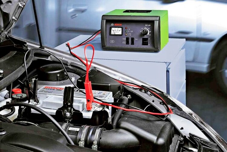 Установите подготовленный аккумулятор на горизонтальном устойчивом основании и подключите к ЗУ в последовательности: «минус», затем «плюс». Если ЗУ не снабжено кнопкой отключения – предварительно нужно вытащить его вилку из сети, а включать только после фиксации клемм. В «автоматах» режим выставлять не нужно, в «ручных» и «интеллектуальных» ЗУ допускающих регулировку вам нужно будет выбрать ток, либо – напряжение заряда.