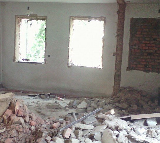 Перед демонтажем из помещений выносится вся мебель и другие предметы, которые можно повредить при сносе. Если снос стен не повредит основную конструкцию помещения и все разрешения получены, то начинают проводить демонтажные работы, которые выглядят следующим образом: