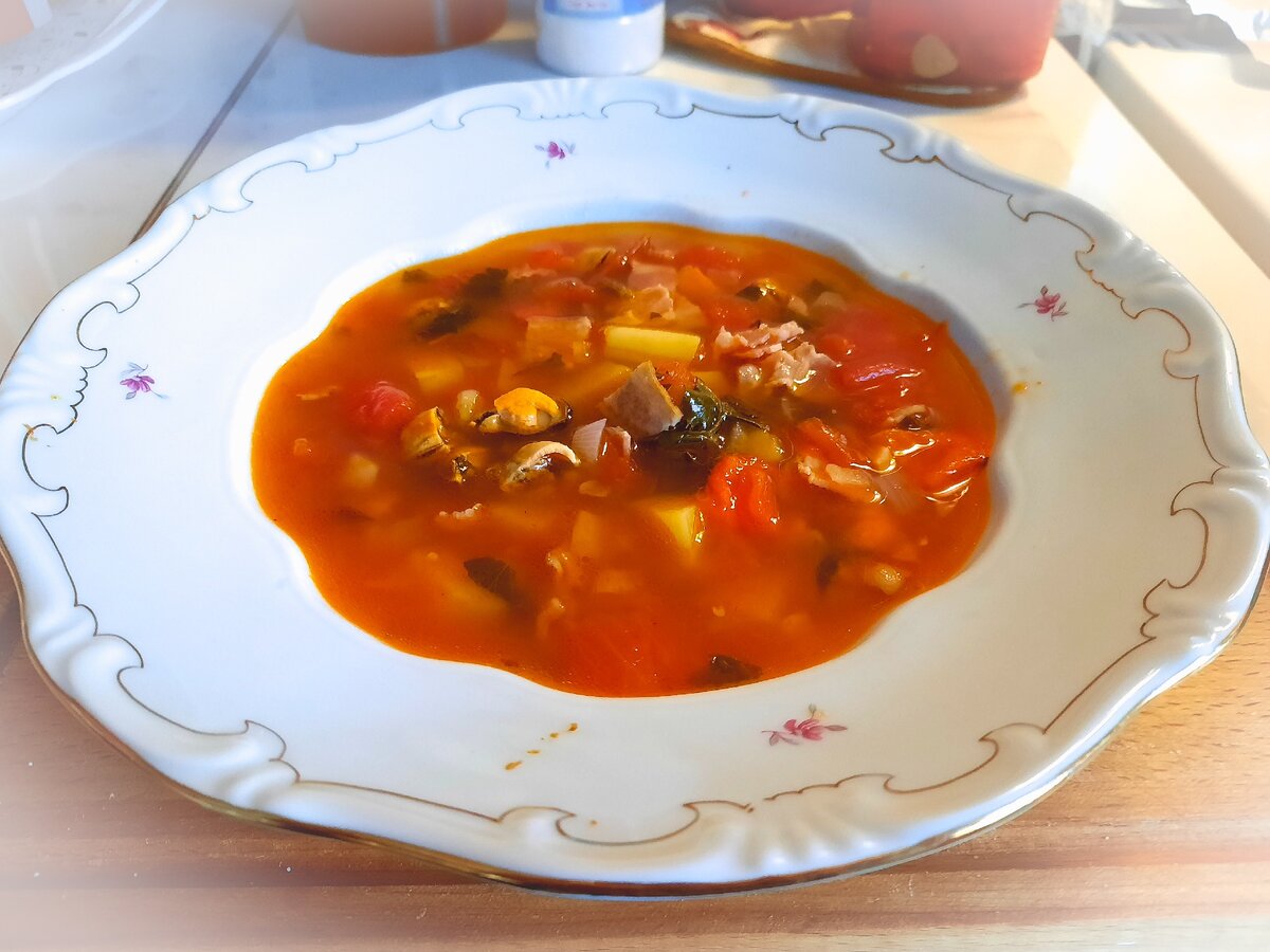 Clam chowder —похлебка с морепродуктами родом из США.