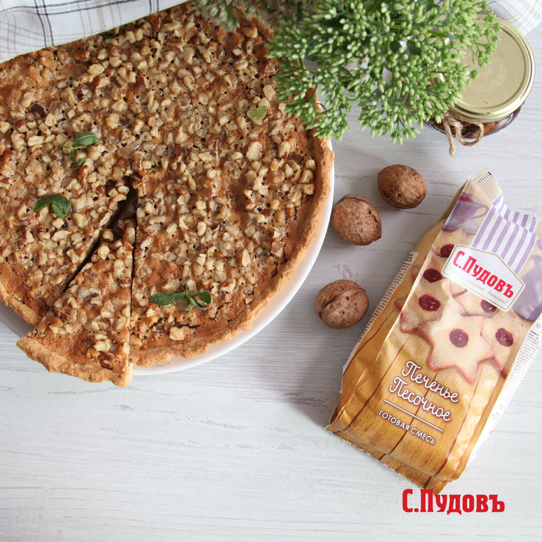 Оригинальный песочный пирог с ореховой начинкой. Хрустящая корочка и медово-кремовая серединка с орешками – идеально к чаю!