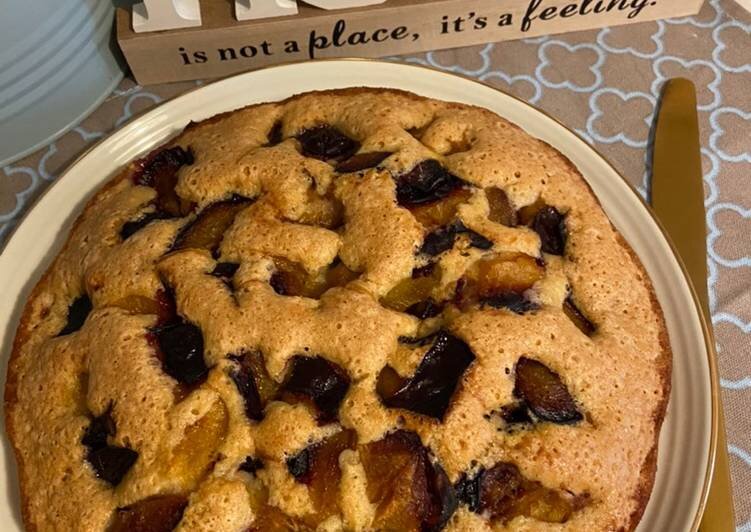 Выливаем тесто в форму и добавляем сливы. По желанию, можно сделать слоями.Выпекает в разогретой духовке до 180 градусов 40 мин.Приятного Вам чаепития.☕️