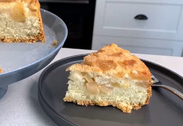 Он известен как шарлотка. Я готовлю его как перевернутый – то есть после выпечки, дав ему постоять 10–15 минут, накрываю его блюдом и переворачиваю вверх дном. Таким образом, яблочный слой получается сверху.