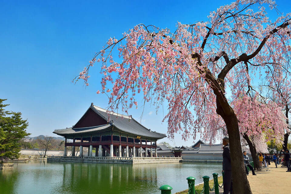 Королевский дворец был построен еще в 14 веке. В то же время, что и перенос столицы Кореи в Сеул. В конце 19 века дворцовый комплекс насчитывал 330 зданий, 10 из которых пострадали во время очередной японской оккупации. Одно из главных зданий: Кынджонджон — украшенный росписями, статуями животных тронный зал.