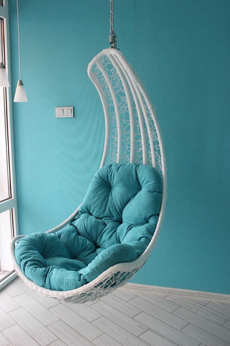При подвесе на потолок следует учитывать амплитуду раскачивания кресла, предусмотрительно отступив около 70 см от стен. Подушка в кресле Венера имеет сложную форму, с явно выраженным верхом и низом, при этом остается удобной и уютной. Плетение поручня необычно широкое, за ним скрывается усиленный каркас кресла, но это лишь красит кресло, придает ему законченный вид.
