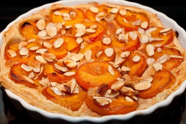 Ингредиенты: Приготовление: 1. Тесто заранее, за 20 минут, достаньте из морозильника. Персики помойте, обсушите. Духовку включите и разогрейте до 180ºC. 2. Тесто раскатайте в тонкий пласт, положите в форму с низкими бортиками (24 см), обрежьте лишнее. Сахар соедините со специями, перемешайте. Посыпьте тесто 1 ст. л. сахара со специями. 3. Персики разрежьте на дольки, выложите внахлест по дну теста. Присыпьте остальным сахаром со специями. Сверху разложите ломтики холодного сливочного масла. Поставьте форму в разогретую духовку и запекайте в течение 40 минут. 4. Достаньте готовый пирог из духовки, остудите. Приятного аппетита!