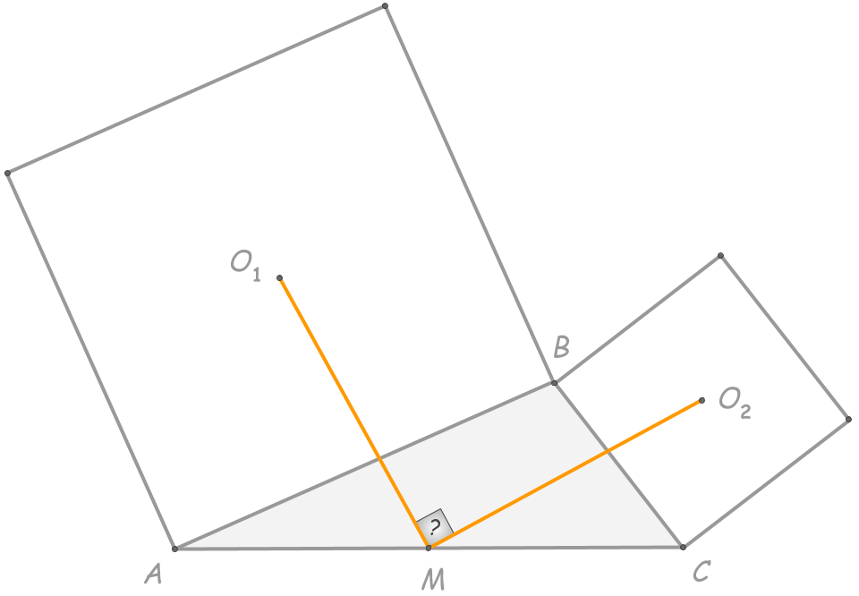 Точки O₁ и О₂ — центры этих квадратов, точка М — середина стороны AC.