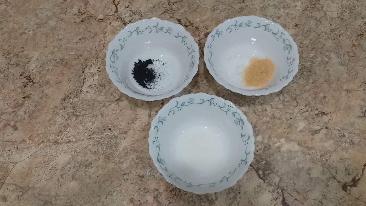 Подготовим 1 ч.л. желатина, 1 ч.л. молока и одну таблетку активированного угля.