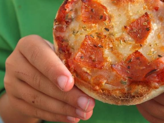 На фото - одень большой пиццоладушек. Не обращайте внимания. Джен Сигал сделала это фото (сына с пиццоладьем) для того, чтобы вы наглядно смогли увидеть, как оладушки похожи на натуральную пиццу. На самом деле они в три раза меньше, т.е. приближены по размерам к нашим обычным домашним сырникам и оладьям.