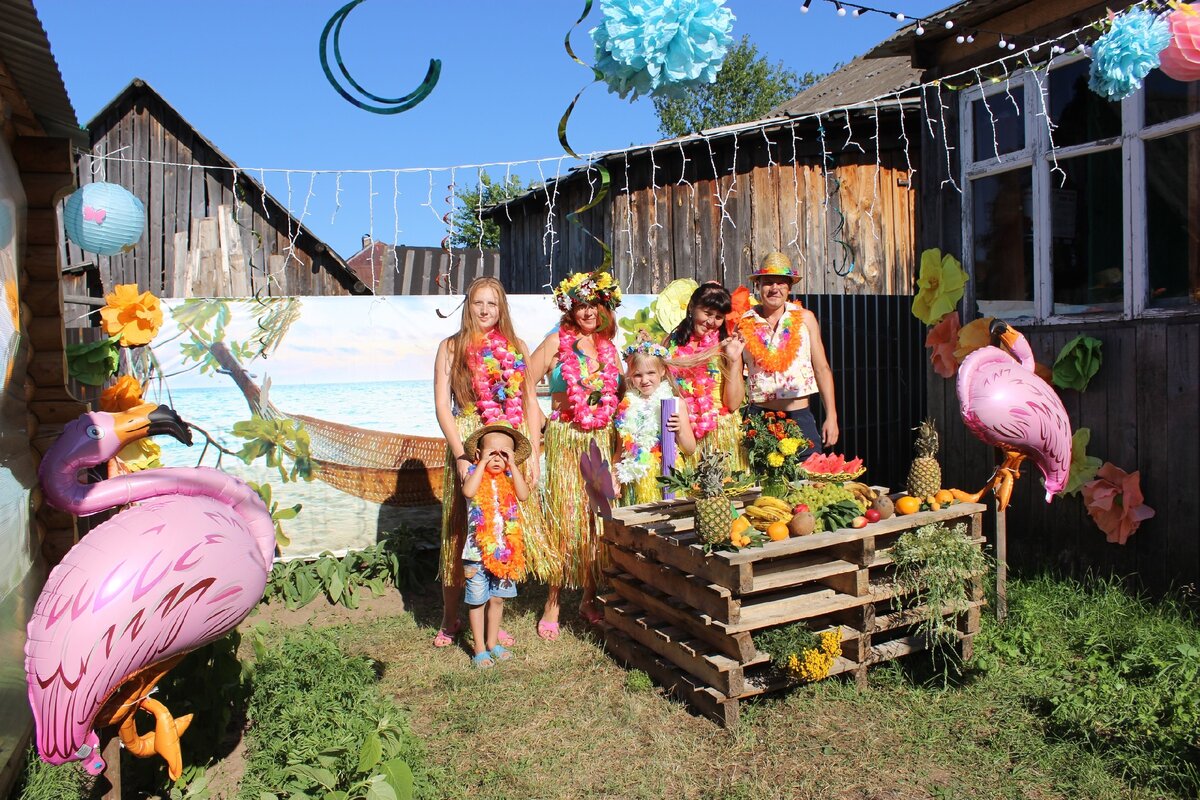 Нашей дочке исполнялось 8 лет и так как ей очень повезло с датой рождения - 27 июля, мы решили устроить яркий, сочный и экзотический праздник, прямо во дворе деревенского дома.