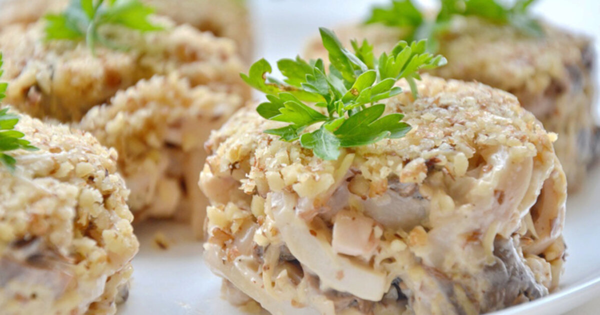 Яркий, праздничный салат c куриной грудкой, #грибами и сыром сможет украсить и праздничный стол, и повседневный.