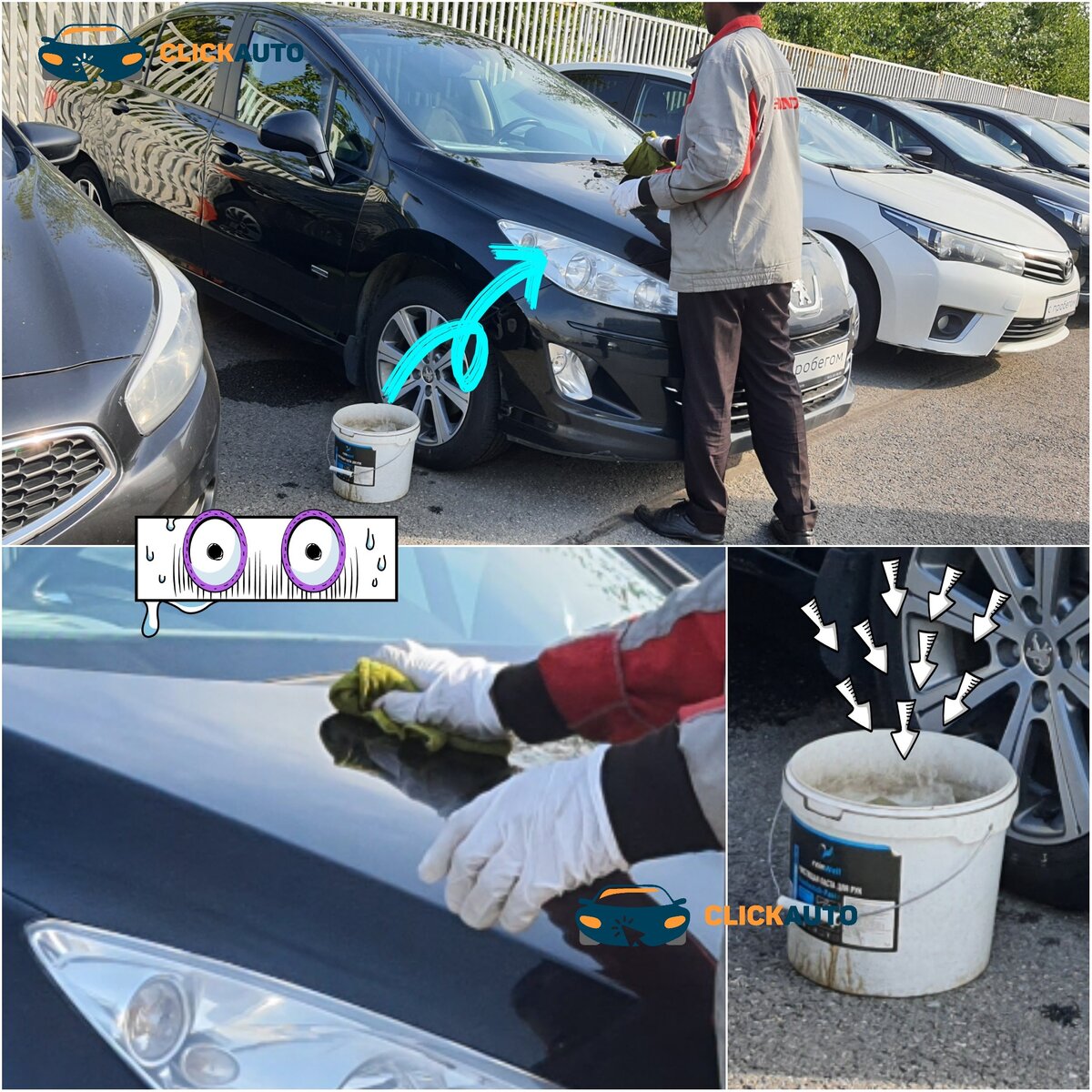 Возле этого несчастного автомобиля, стояло ведро с грязной водой, куда он опускал эту грязную тряпку и после