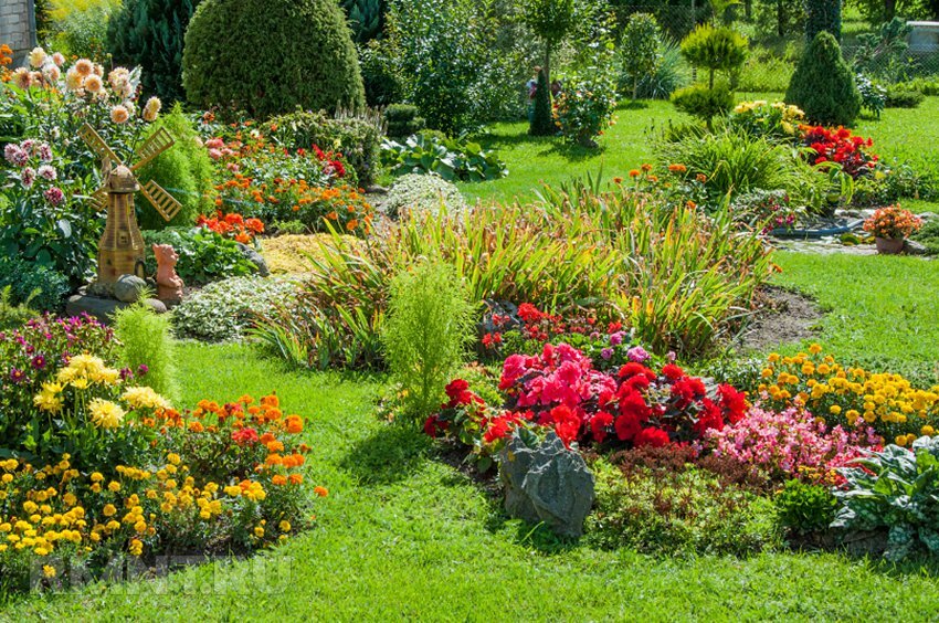 - Яркие и ухоженные миксбордеры, в которых используются только характерные для вашей местности растения.