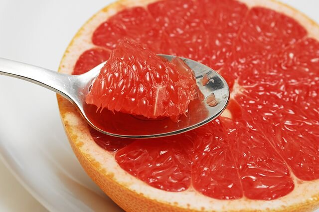 Витаминный цитрус Сок грейпфрута стимулирует обмен веществ, улучшает пищеварение и выработку желудочного сока, укрепляет иммунную и нервную систему, обладает бактерицидным и жаропонижающим действием. Этот фрукт особенно полезен при физическом и умственном переутомлении, незаменим при простудных и желудочно-кишечных заболеваниях. Органические кислоты (например, лимонная, содержащаяся под шкуркой грейпфрута) способствуют усвоению главного кроветворного элемента железа и препятствуют образованию тромбов. А витамин С, которого в грейпфруте тоже немало, является источником молодости для кожных покровов. Он стимулирует обновление соединительных тканей, предупреждает появление морщинок. Кроме того, аскорбиновая кислота – незаменимый материал для построения белка коллагена, который прочно «скрепляет» клетки кожи, делая ее упругой и эластичной. Сидящие на диете дамы будут приятно удивлены, узнав, что грейпфрут полезен для снижения веса. Содержащаяся в нем клетчатка стабилизирует уровень сахара