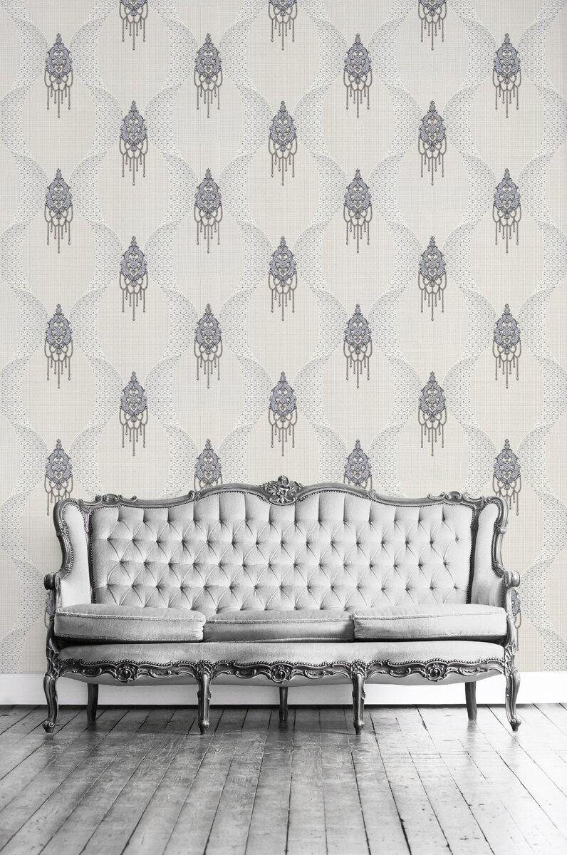 Так, в коллекции обоев Sultanis (FM71599) для создания элегантного и, в то же время, пышного мотива мы использовали матовое серебро и золото. В сочетании друг с другом на фоне из россыпи драгоценных блесток они подчеркивают изящество коллекции. Дымка мягкой тени