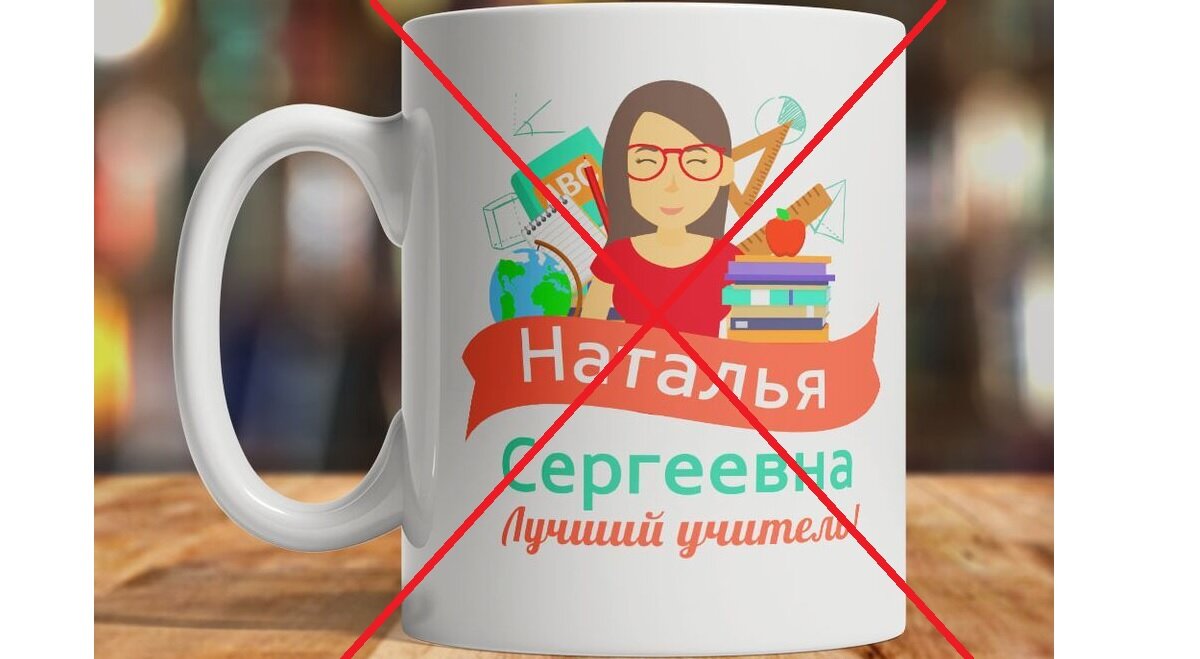 - Чашка с надписью. Поверьте, этого добра, как и другой посуды, у педагога со стажем накапливается столько, что уже и передаривать некому.