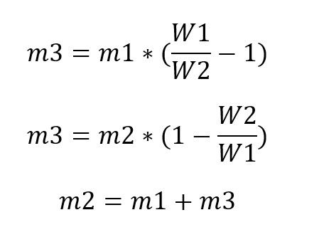 Обозначим массу раствора до разбавления как m1, а массу раствора после разбавления — m2. Тогда массу воды m3, необходимую для разбавления в зависимости от того, задано ли значение m1 или m2, находят по формулам: