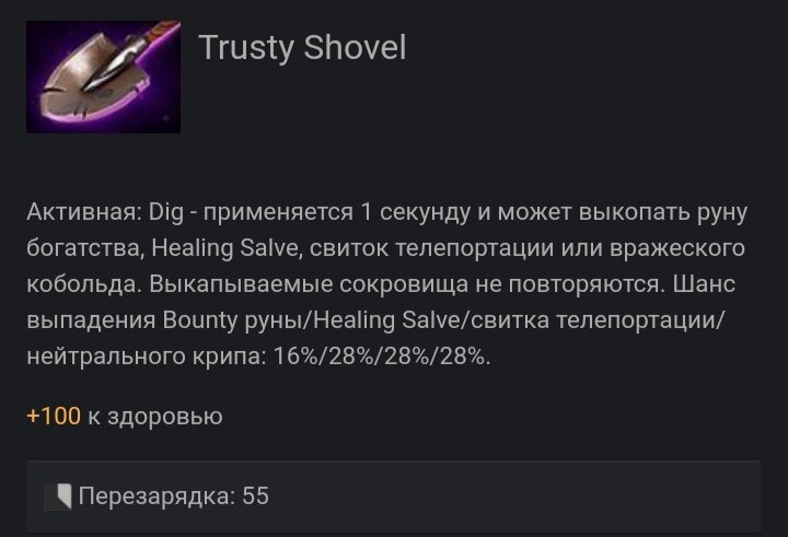Предупреждаю, что мнение сугубо субъективное, и автор будет рад выслушать ваши точки зрения в комментариях. Номер 5 Лопата попадает на пятую позицию за то, что она как может принести огромную пользу в виде хила, халявной тп, или даже баунти руны, что добавит денег всей команде. Но так же очень случайна, что очень нестабильно. Бонус в 100 хп так же будет приятным на очень ватных сапортах. Номер 4 Оптика очень приятный предмет для всех кастеров, да и не только. Бонус к регену маны и дальности способностей будет кстати большинству персонажей нашей любимой игры. Номер 3 Брошка будет очень полезна так же нюкерам, персонажам которым не хватает манапула, или скорости передвижения. Особенного внимания заслуживает мс, так как в начале игры он может очень сильно зарешать, и не так уж много предметов в начале дают бонус к нему. Номер 2 По-моему метла будет очень желанна всеми ближними корами в начальной игре. Бонус урона и брони больше чем у когтей и колечка, что конечно немного, но смотрится оч