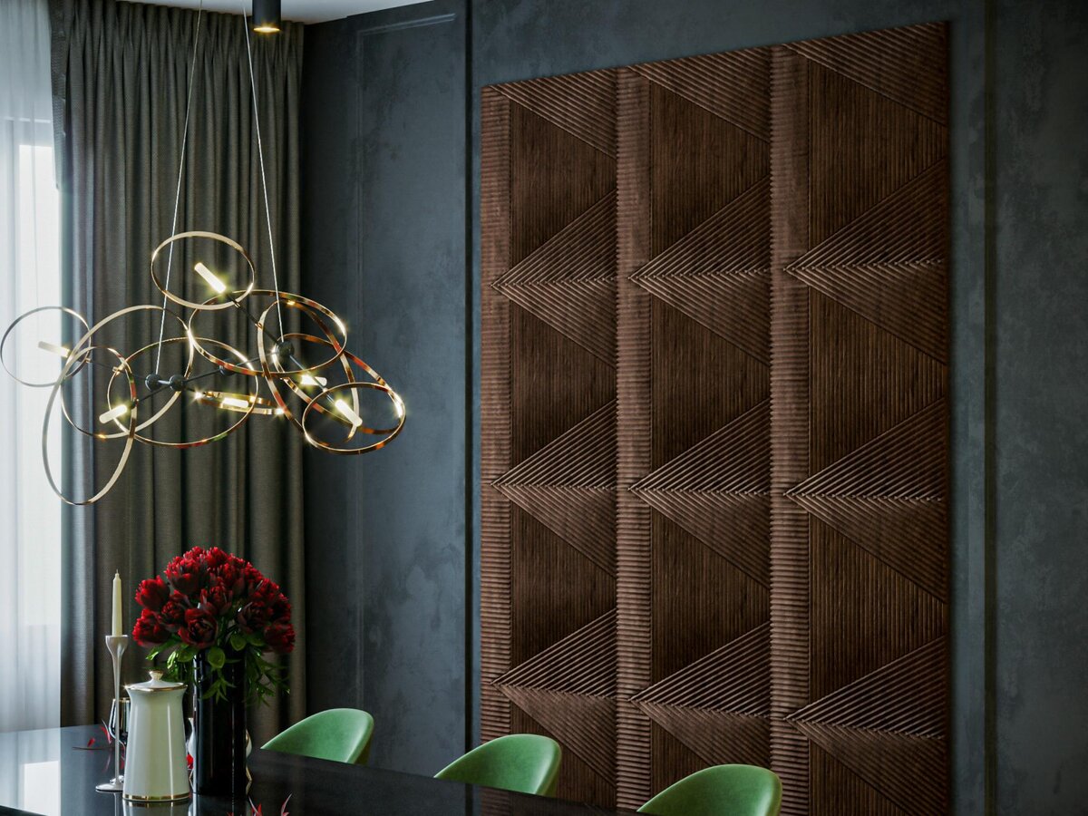 Текстура и оттенки натурального дерева привлекают особое внимание на однотонных стенах, при этом совсем не важно в каких цветовых оттенках она выражена. Беспроигрышным вариантом будет использования зеркальных панелей, панно или резных панелей от бренда Relieffo.