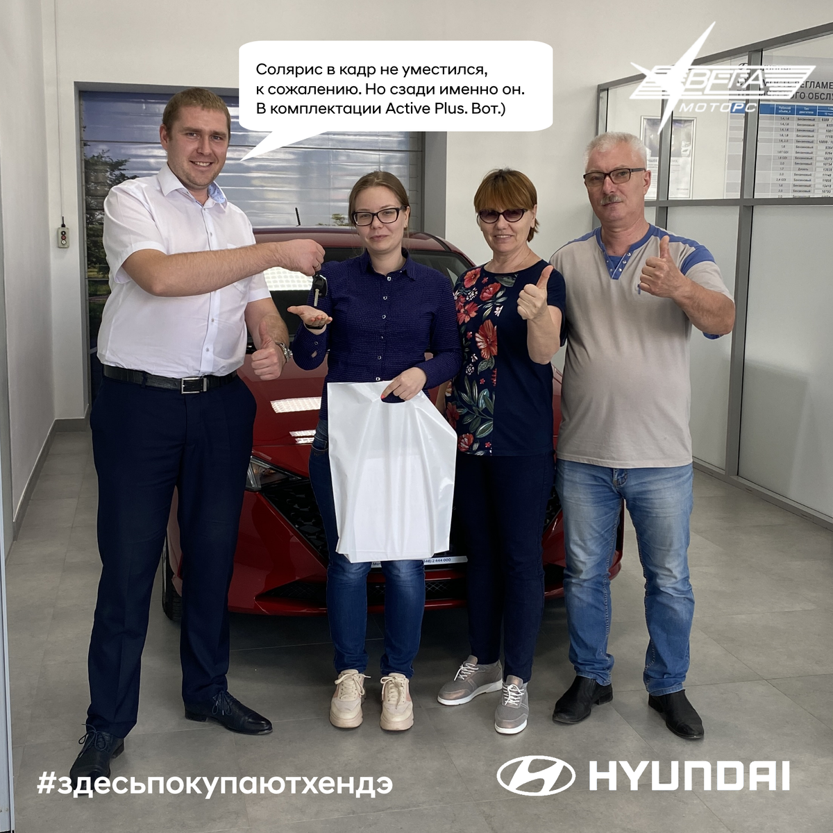 Поздравляем дружную семью - Викторию и ее родителей со столь долгожданной и незабываемой покупкой современного автомобиля Hyundai SOLARIS в комплектации Active Plus.