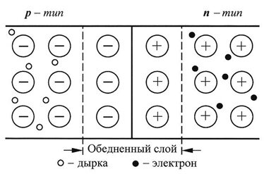 При отсутствии напряжения или других внешних сил pn-переход, препятствует движению носителей зарядов из области с одной проводимостью в другую. Если к нему приложить прямое напряжение (к p-области положительный потенциал, а к n-области отрицательный) переход сужается и начинает пропускать электрический ток.