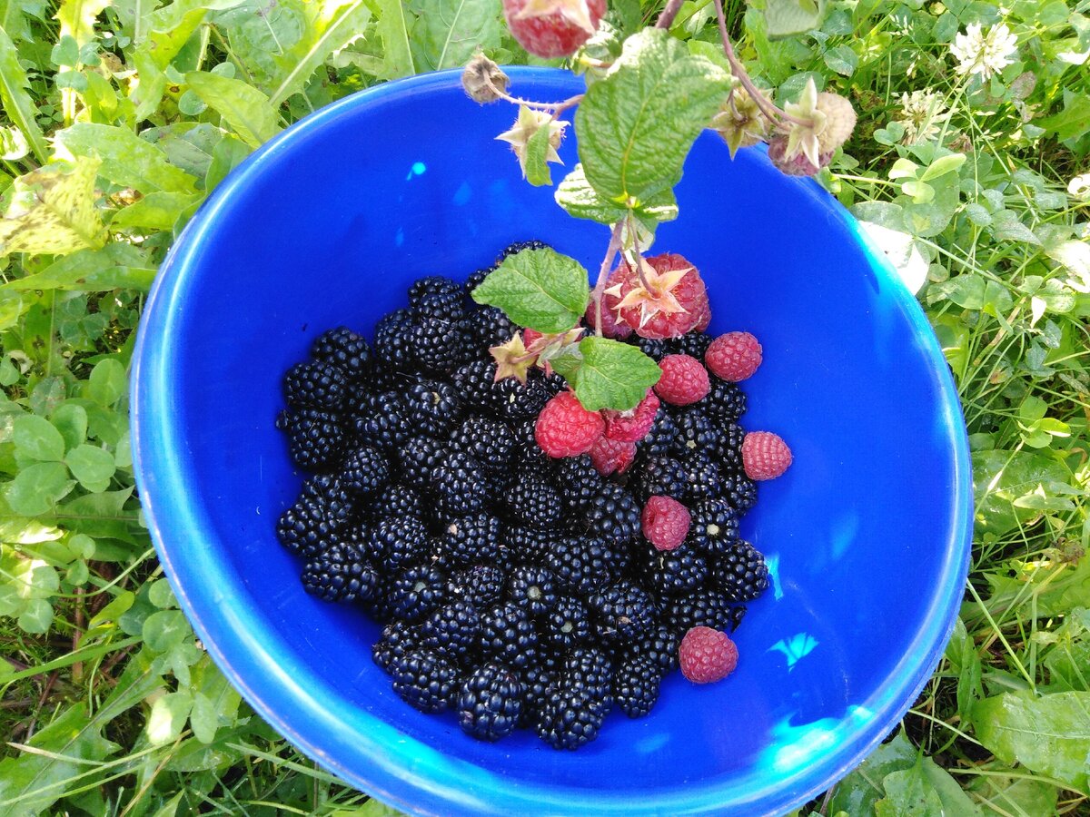 Мы занимаемся текущими делами, уже пришла пора сбора осенних сортов малины и ежемалины.